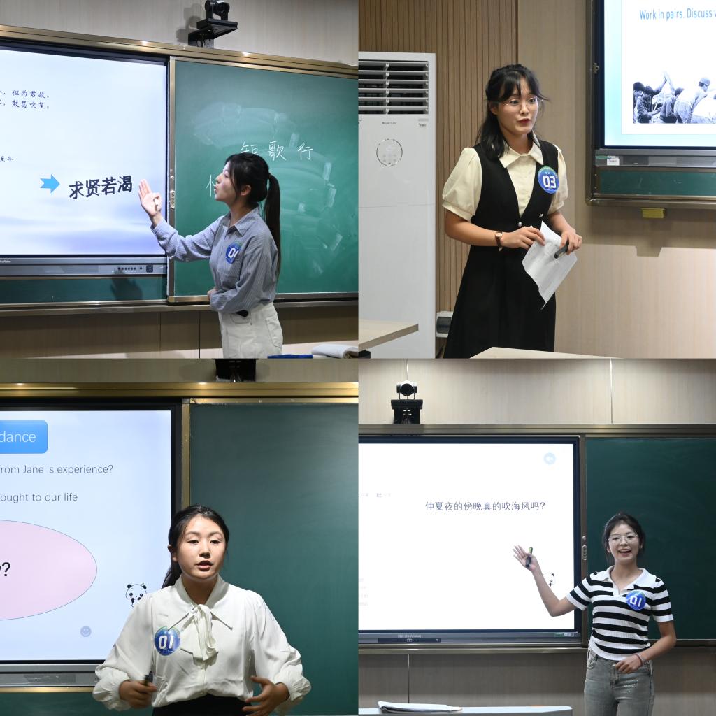 比赛现场,选手们积极准备,教学设计形式多样,教学内容丰富;多媒体课件制作生动有趣;即席讲演和模拟课堂表达准确流畅、思路清晰,充分展现了贝博官网师范生过硬的教学技能和从教素养。