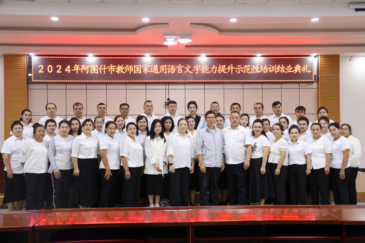 9月25日,培训班结业典礼在阿图什市教育局举行。结业仪式上,国家语言文字推广基地(BB贝博艾弗森官方网站)代表对本次培训进行了总结,宣读了结业学员名单,并对此次示范性培训班圆满举行表示祝贺,希望BB贝博艾弗森官方网站与阿图什市教育局以此次培训为开端,不断深化教育合作,在教育教学改革、师资队伍建设、科研合作等多个领域实现共同发展,共同书写建设教育强国崭新篇章。