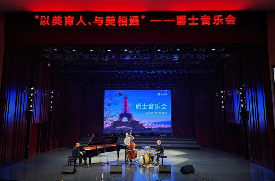音乐会由三位法国演奏家联袂呈现,他们跨越了地域和文化的界限,将不同国家和民族的音乐元素融入演出,既具国际化的现代感,也深具传统韵味,给师生带来了一场别具一格的美育之旅。