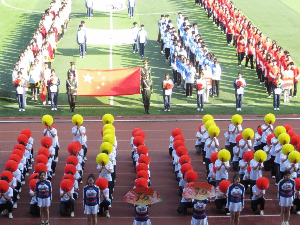国旗队气宇轩昂,雄姿英发;鲜花队端庄优美,落落大方;彩旗队目光坚定,神采飞扬;各二级学院方阵意气风发,斗志昂扬,充分结合学院特色与文化,用别具一格的表演献礼中华人民共和国成立75周年。