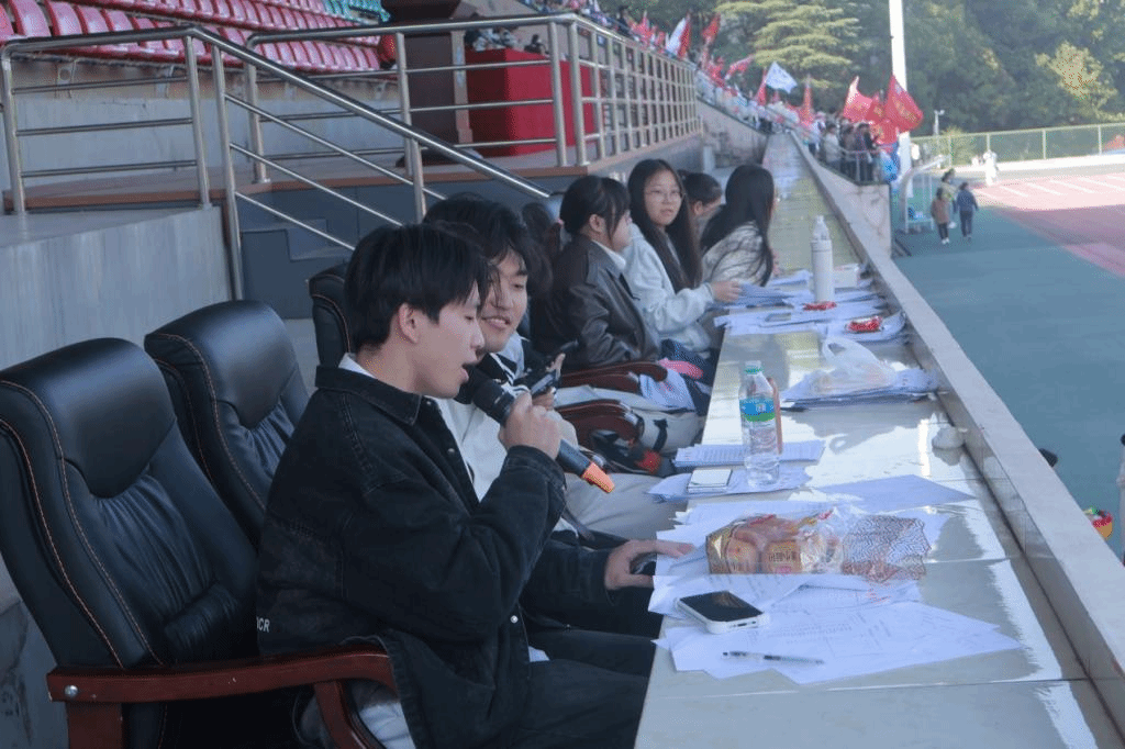 广播员们则用清晰、洪亮的声音,将比赛的最新动态、运动员们的精彩表现以及观众们的热情加油声传递给在场的每一个人。他们精心准备每一句播报,确保信息的准确无误,用声音的力量,将运动会的激情与活力传递给每一个角落。广播员刘欣纯说道:“有一份光,便发一份热。因为热爱,所以想用声音传递力量,为运动健儿们提供情绪价值,加油助威。作为第一次参与广播工作的新人,在运动会开始之前,学长学姐会亲自带我们进行培训和指导工作,便于更好的展现声音的力量。”在运动员们取得佳绩时,广播员们会用最真挚的话语送上祝福,让这份喜悦与荣耀与所有人共享。