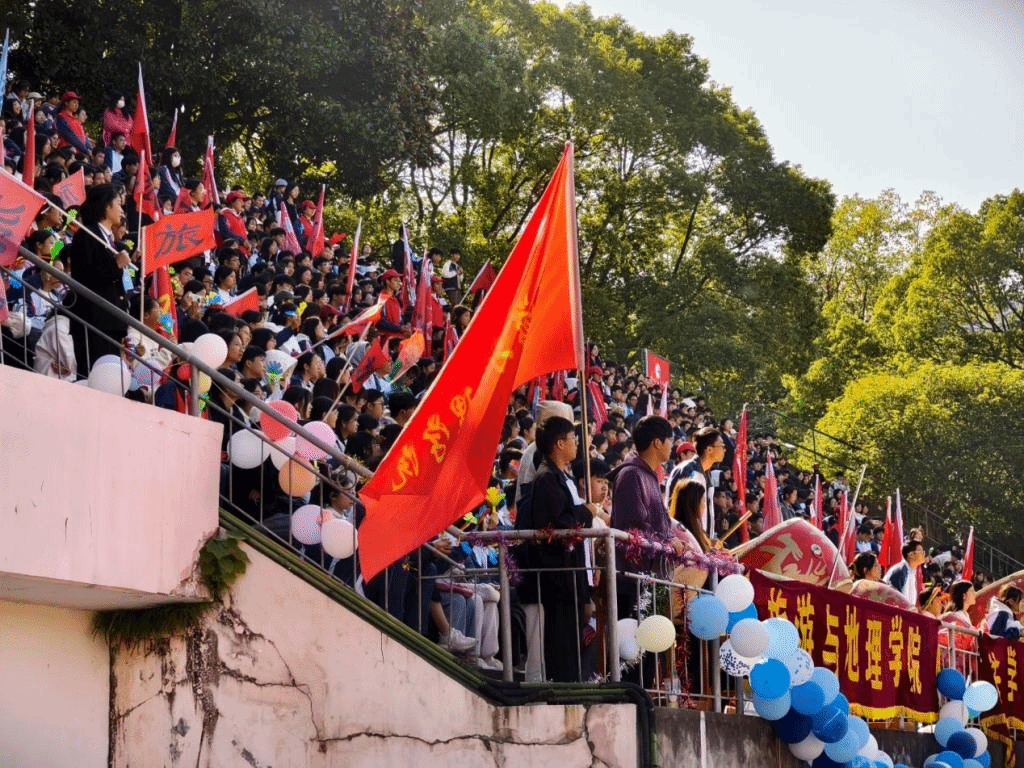 “运动员们,加油!”“坚持就是胜利,你们是最棒的!”赛场上的运动健儿奋力拼搏,看台上的观众们也热情不减。旅游与地理A2411班的魏颖婷是第一次观看大学校园的运动会,她在比赛过程中看到了很多非常有趣的赛程和刺激的比赛,感到非常开心。