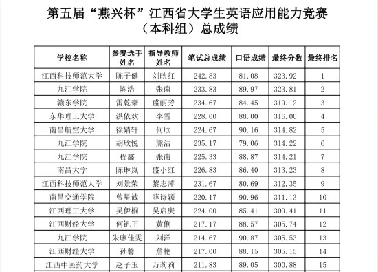 10月25日至26日,由江西省教育厅主办,江西师范大学和北京燕兴国际教育集团联合承办,江西省外语学会协办的第五届“燕兴杯”江西省大学生英语应用能力竞赛决赛在江西师范大学成功举办。经过复赛、决赛两轮的激烈角逐,贝博官网外国语学院派出的竞赛选手斩获四个省级一等奖,获奖选手总分在全省所有参赛本科院校中排名第一,创下了贝博官网在该项赛事中取得的历史最好成绩。