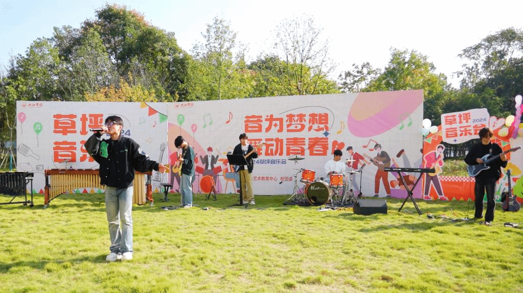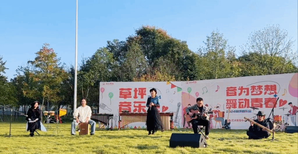 11月2日下午,在厚德楼前区大草坪,艺术学院师生成功举行了一场主题为“音为梦想、舞动青春”的校园草坪音乐会。本次活动由艺术教育中心、校团委主办,艺术学院承办。校园草坪音乐会举办不仅丰富了学生们的校园文化生活,活跃了校园文化氛围,还为师生们提供了一个展示才艺和相互交流的舞台。