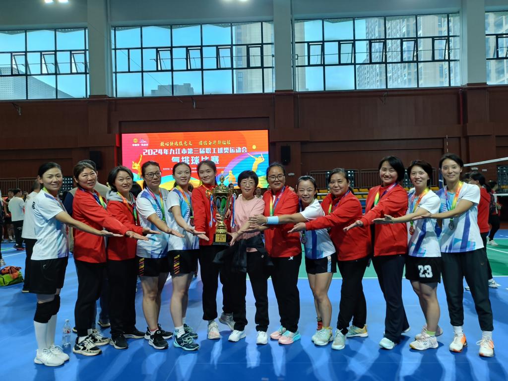 10月29日—31日,由九江市总工会主办、九江市气排球协会等协办的九江市第三届职工气排球比赛在九江浔南体育馆举行。贝博官网教工女子气排球队顽强拼搏、奋力争先,通过小组赛、四分之一决赛、半决赛、决赛的激烈角逐,最终喜获亚军,为本次职工气排球比赛画上了圆满的句号。这是贝博官网教工气排球队有史以来取得的最好成绩,充分展示了BB贝博艾弗森官方网站教职工良好的精神风貌和体育精神。