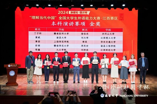 近日,在2024年“外研社•国才杯”“理解当代中国”全国大学生外语能力大赛江西赛区决赛中,贝博官网学子们凭借出色的外语能力,再次斩获佳绩,共获得三项金奖、两项银奖和六项铜奖,展现了贝博官网外语教育的丰硕成果。获得三项金奖的两位选手——外国语学院程鑫和陈浩将代表江西赛区征战“外研社•国才杯”国际传播综合能力赛项的全国决赛。