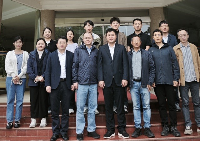双方在行政楼前合影留念。