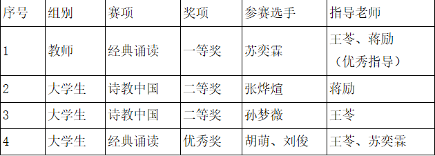 决赛中,张烨煊依托庐山地域文化讲解《题西林壁》,孙梦薇讲解《乌夜啼·林花谢了春红》;线下总决赛中,她们又分别讲解了《声声慢·寻寻觅觅》和《皂罗袍·原来姹紫嫣红开遍》。赛场上,她们沉着应对,稳定发挥,最终斩获全国二等奖。苏奕霖老师受邀参加开幕式节目《美丽中国》教师组演出。他的朗诵作品《兵车行》既有张力又不乏细腻,最终获得一等奖,是该赛项最高奖次。