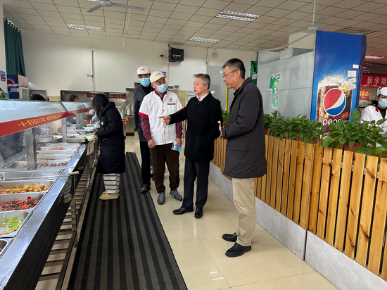 会后,鲁卫东一行深入食堂内部,实地查看了食堂的环境卫生、食材储存、加工操作间等区域,详细询问了食品采购渠道、餐具消毒流程等关键环节的落实情况。在参观过程中,校领导与食堂工作人员亲切交流,对他们的辛勤付出表示感谢,并鼓励大家继续保持高度的责任感,为师生提供更加安全、营养、美味的餐饮服务。