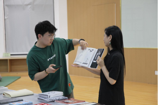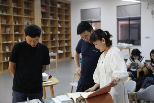 艺术学院庞茜同学感叹道:“指尖触摸纸张的肌理,感受时光沉淀的触感。体会匠心的专注,与书友探讨装帧美学,恍若穿越回旧日书坊。”