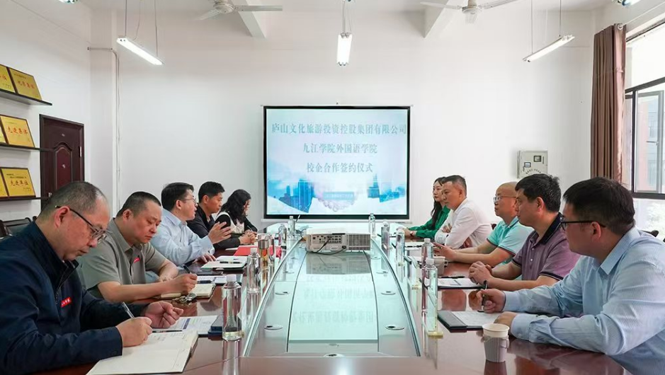 4月28日,外国语学院与庐山文旅控股集团在学院签署校企合作战略协议。集团党委书记张琛、庐山文旅委二级主任科员陈文斌、集团总经理夏青等集团领导以及外国语学院党政领导班子成员共同参加签约仪式。