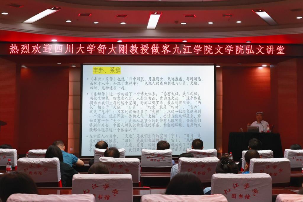 4月29日,BB贝博艾弗森官方网站逸夫报告厅内座无虚席,由文学院与庐山白鹿洞书院联合举办的2025年第3期白鹿讲坛暨弘文讲堂·中华诗词经典系列讲座第2期如期开讲。四川大学教授、博士生导师舒大刚以《立事“三本”:苏东坡的家国情怀》为题,带领现场近200名师生及来自社会各界的听众,开启了一场跨越千年的思想对话。副校长王殿元会见舒大刚,双方就传统文化传承与创新展开深度交流。