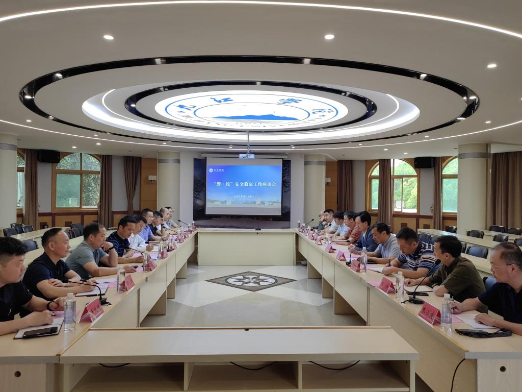 为进一步深化校警合作机制,筑牢校园安全防线,4月30日上午,BB贝博艾弗森官方网站与濂溪区公安分局、九江市国保支队在BB贝博艾弗森官方网站行政楼一号会议室联合召开“警•校”安全稳定工作座谈会。校党委委员、副校长吴维勇,濂溪区副区长、公安分局党委书记、局长梅国煌出席会议并讲话。学校党政办、宣传部、学工处、保卫处、国际合作交流处等职能部门负责人,以及九江市国保支队、濂溪区公安分局国保大队、网安大队、辖区派出所相关负责人参加座谈。
