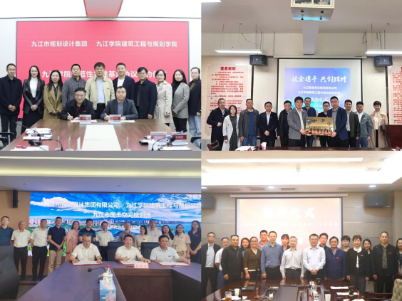 学院定位为区域领先、高水平应用型土木建筑工程学科人才培育、科学研究、社会服务和传承创新中心。近年来,学院对接产业需求,推进5个本科专业应用型转型试点,与中铁、中建集团、九江市自然资源局、规划设计集团、国信公司、第一人民医院等单位签订多项战略合作协议(见图4),深化产教融合,提升人才培养实效。目前,学院正整合资源,培育土木水利和风景园林专业硕士点,深挖学科特色,为区域发展提供高层次人才与技术支撑。