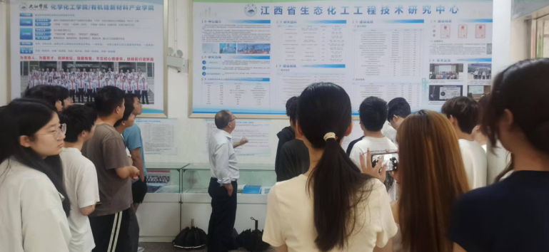 江西省生态化工工程技术研究中心的老师带领同学们参观了工程中心近5年的科技成就展,并对中心的大型仪器进行逐一介绍。同学们现场观摩了科研实验。