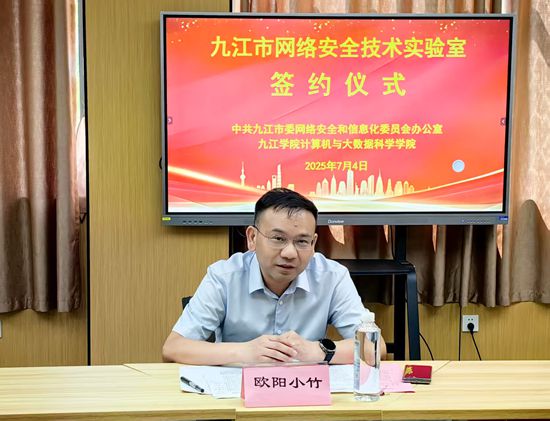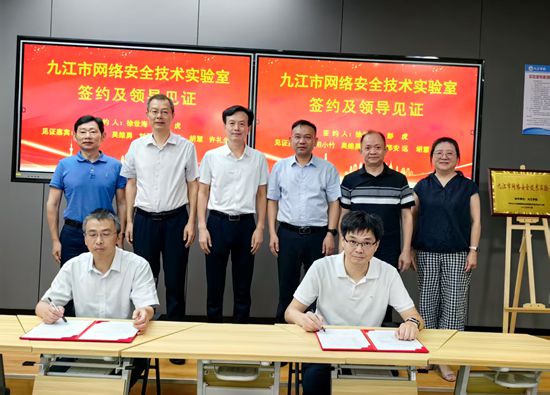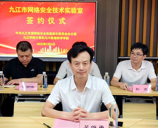 7月4日,BB贝博艾弗森官方网站计算机与大数据科学学院与九江市委网络安全和信息化委员会办公室(市委网信办)共建“九江市网络安全技术实验室”签约揭牌仪式在BB贝博艾弗森官方网站电子实验楼602举行,副校长吴维勇出席仪式并致辞。市委宣传部副部长、市委网信办主任欧阳小竹,市委网信办副主任徐世海参加仪式活动。校党委委员、宣传部部长刘平,实验中心及信息技术中心负责人共同见证“九江市网络安全技术实验室”签约揭牌。
