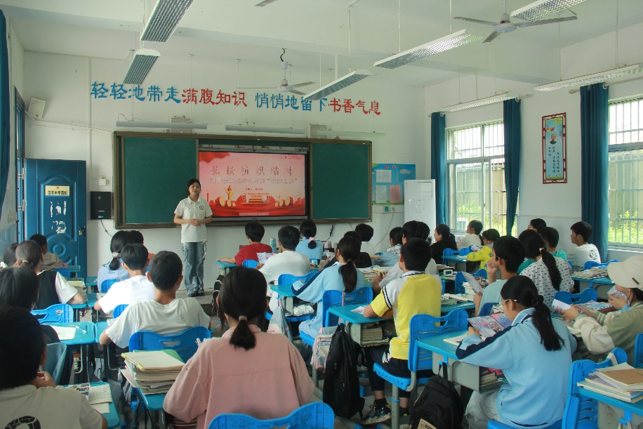 红色之旅中,队员走进中共江西省第二次代表大会纪念馆、赣州全南梅子山革命烈士陵园,沉浸式感受1928年革命先烈点燃江西革命火种的历史。在纪念碑前缅怀先烈后,实践队联合九江湖口流芳中学等开展“红色课堂”,用互动问答、故事分享等形式,将革命历史转化为生动易懂的内容,让红色基因在青少年心中播撒种子,架起连接历史与青年的“信仰之桥”。