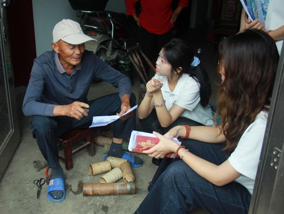 传承之旅以“精神之桥” 为纽带,队员们深入村镇宣讲“抗洪精神”。队员走进长江沿岸防汛村普及防汛知识,向独居老人讲解避险技巧,拜访抗洪老兵听“人在堤在”故事;在九江湖口流芳中学“防汛课”上,队员们用情景模拟等形式讲抢险故事,让抗洪精神扎根少年心中。