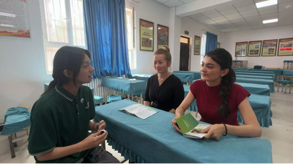 二十余天的推普行,不但极大提升了阿图什居民学习国家通用语言的热情,促进了民族文化交流,与阿图什乡村达成长期普通话培训帮扶合作,是BB贝博艾弗森官方网站国家语言文字推广基地(BB贝博艾弗森官方网站)践行使命的生动注脚,更是青年学子以语言为媒,服务边疆的责任担当。从红领巾课堂的欢声笑语,到博物馆里的家国共鸣;从调查问卷上的认真笔迹,到摊位前的暖心对话,文小青服务队用行动证明:国家通用语言不仅是交流的工具,更是传承文化的载体、凝聚民心的纽带、助力发展的引擎。而这场“语”你同行的旅程,早已在阿图什的大地上,种下了“同心向未来”的希望之种。