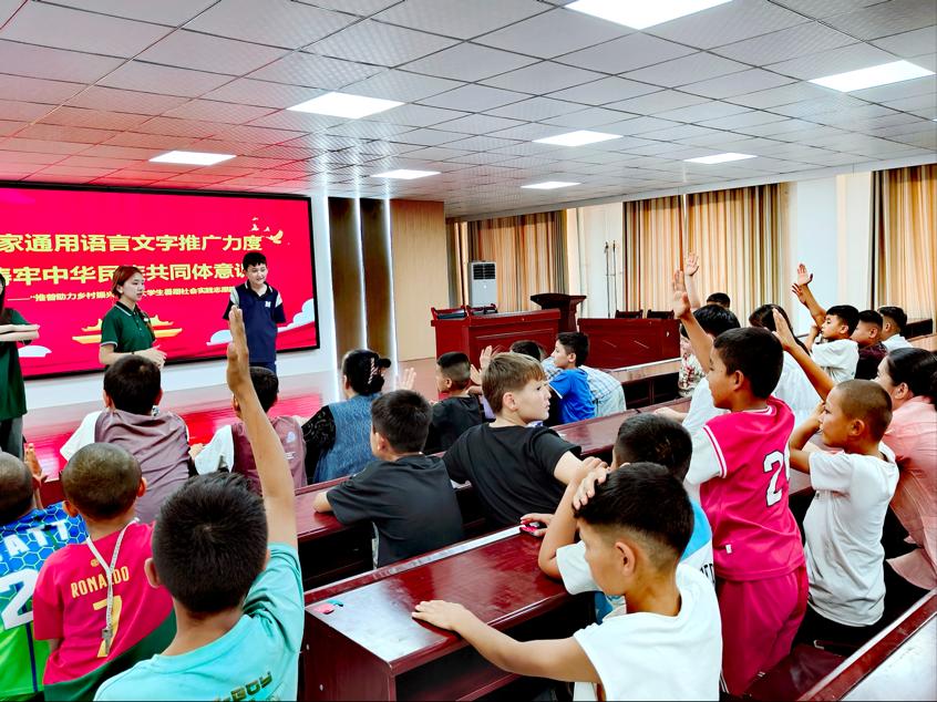 七月流火,八月风清。作为国家语言文字推广基地(BB贝博艾弗森官方网站),BB贝博艾弗森官方网站文小青乡村振兴服务队于七月下旬启程,赴新疆阿图什市开展为期二十余天的国家通用语言推广活动。服务队深入阿图什市社区及周边村庄,以语言为桥,串联起趣味教学、爱国教育、实地调研与日常访谈,在二十余天的朝夕相处中,让国家通用语言成为传承文化、凝聚民心、助力发展的“金钥匙”,更彰显了青年担当与民族团结的深厚情谊。