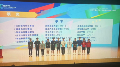 自2024年下半年以来,材料科学与工程学院积极宣传动员并组织学生备赛。经过近一年的刻苦训练,学院“智能+”赛道“智能物流搬运”团队(队长:严桢,成员:赖意祥、刘博文、吴定发,指导教师:满达虎、张德勤)在省赛中脱颖而出,成功晋级全国总决赛,最终在参加全国总决赛的204支队伍中斩获全国季军,荣获特等奖,队长严桢作为优秀团队代表上台领奖。