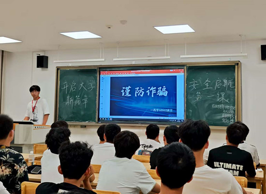 此外,各二级学院利用新生入学的时间节点迅速行动,将反电信网络诈骗纳入新生入学教育第一课,开展形式多样的宣传教育活动。