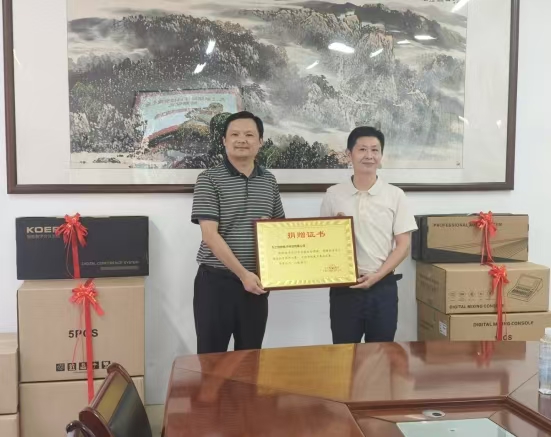 9月15日下午,一场捐赠活动在外国语学院香远楼219会议室开启。九江慧明电子科技有限公司向贝博官网外国语学院捐赠了一批音响设备,这些物资承载着企业对学校教育事业发展的深切关怀与大力支持。