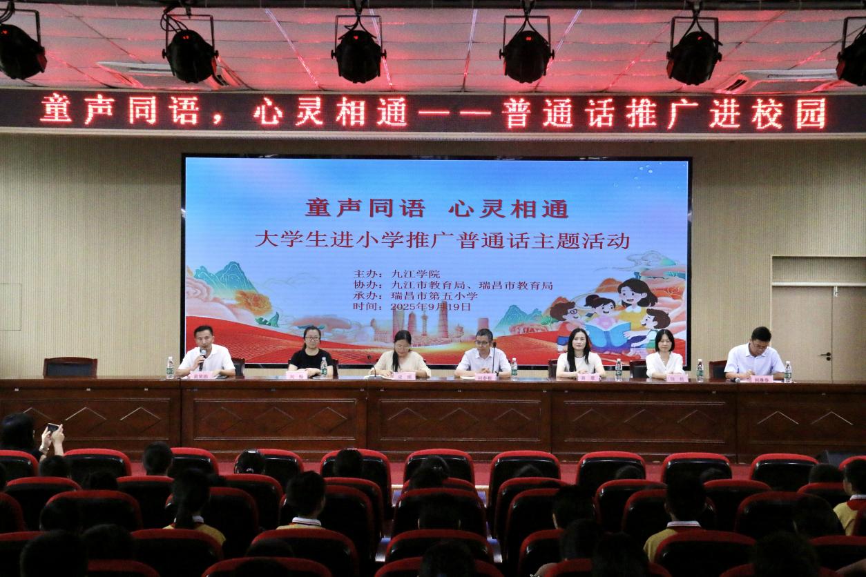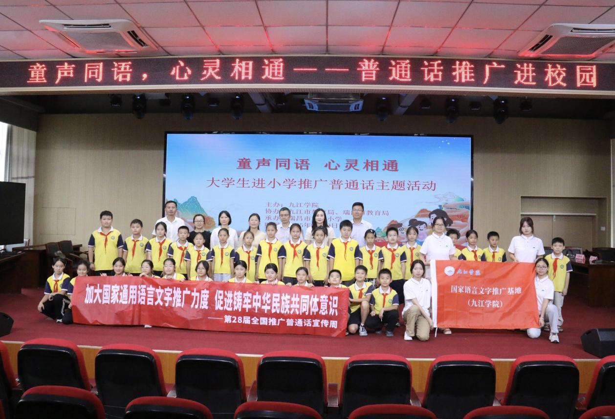 在第28届全国推广普通话宣传周期间,国家语言文字推广基地(BB贝博艾弗森官方网站)积极开展线上线下多元推普活动。9月19日,推普课堂走进了瑞昌市第五小学,与九江市教育局、瑞昌市教育局联合举办“童声同语,心灵相通”大学生进小学推广普通话主题活动,为同学们带来了一场互动式的语言文化体验。