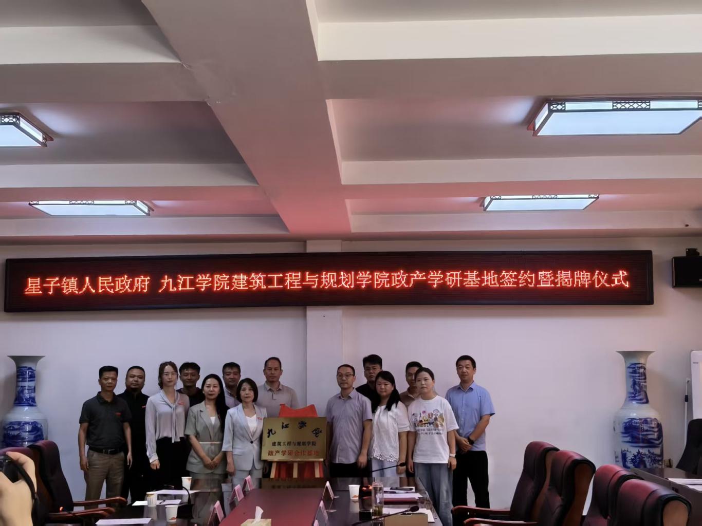 为贯彻落实国家乡村振兴战略,实现政校双方优势互补、协同创新,9月23日,建筑工程与规划学院与庐山市星子镇签署了政产学研合作基地并举行揭牌仪式。这标志着双方在政校合作和人才培养方面取得了实质性的进展。建筑工程与规划学院及星子镇相关负责人出席此次活动。
