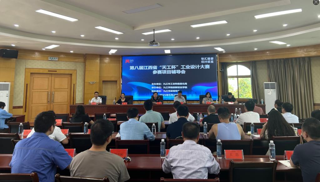 为助力参赛选手精准把握第八届江西省“天工杯”工业设计大赛赛事方向、提升作品竞争力,进一步激发工业设计领域的创新活力,9月28日,由九江市工业和信息化局主办、BB贝博艾弗森官方网站和九江市发明学会承办、协办的参赛项目辅导会在贝博官网举行。江西省工业设计学会秘书长李民、江西省工业设计协会秘书长金昕、九江市工业和信息化局及贝博官网创新创业学院相关负责人,企业代表及高校师生等60余名参赛选手参加辅导培训。