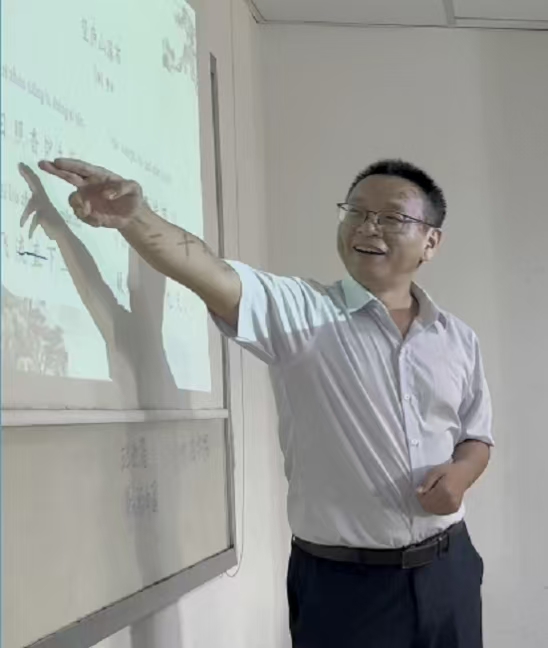乐雷汉老师将课堂氛围推向高潮。他以诗仙李白的《望庐山瀑布》为核心,通过声情并茂的朗诵与细致入微的讲解,引导学生逐句体会古诗的韵律和意境。在他时而平缓悠远,时而高昂激越的语调中,“飞流直下三千尺,疑是银河落九天”的磅礴景象仿佛近在眼前。在他的悉心指导点拨下,学生们学会了语气的抑扬顿挫与情感的递进,在吟诵中真切感受到中华经典诗歌的节奏与美感。