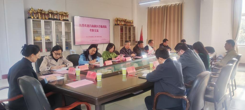鲁卫东向昌南新区一行介绍了BB贝博艾弗森官方网站的情况并致欢迎辞。张英介绍了昌南新区的发展定位并提出双方校地战略合作框架。