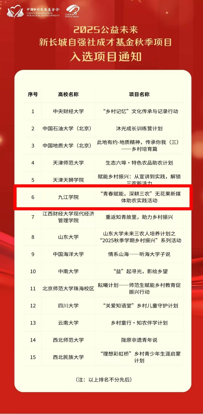 据悉,公益未来项目由中国乡村发展基金会于2013年发起,旨在通过高校社团的社会实践活动,增强大学生的综合能力,并培养他们服务“三农”的热情。成才基金项目则是依托“新长城自强人”月捐计划,支持家庭经济困难学生参与公益实践,以锻炼他们的能力并培养责任感。该基金的评审标准极为严格,特别注重项目的创新性、可行性和育人价值,竞争异常激烈。