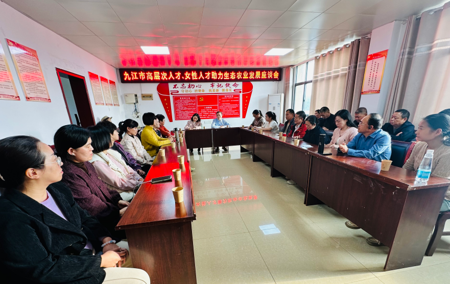 参观结束后,团队参加了“九江市高层次人才、女性人才助力生态农业发展座谈交流会”。会上,来自农业、医药、旅游、物流等领域的专家学者齐聚一堂,围绕生态农业的发展前景、创新理念与实践路径展开了热烈讨论,并为绿里蔬菜基地的可持续发展建言献策。
