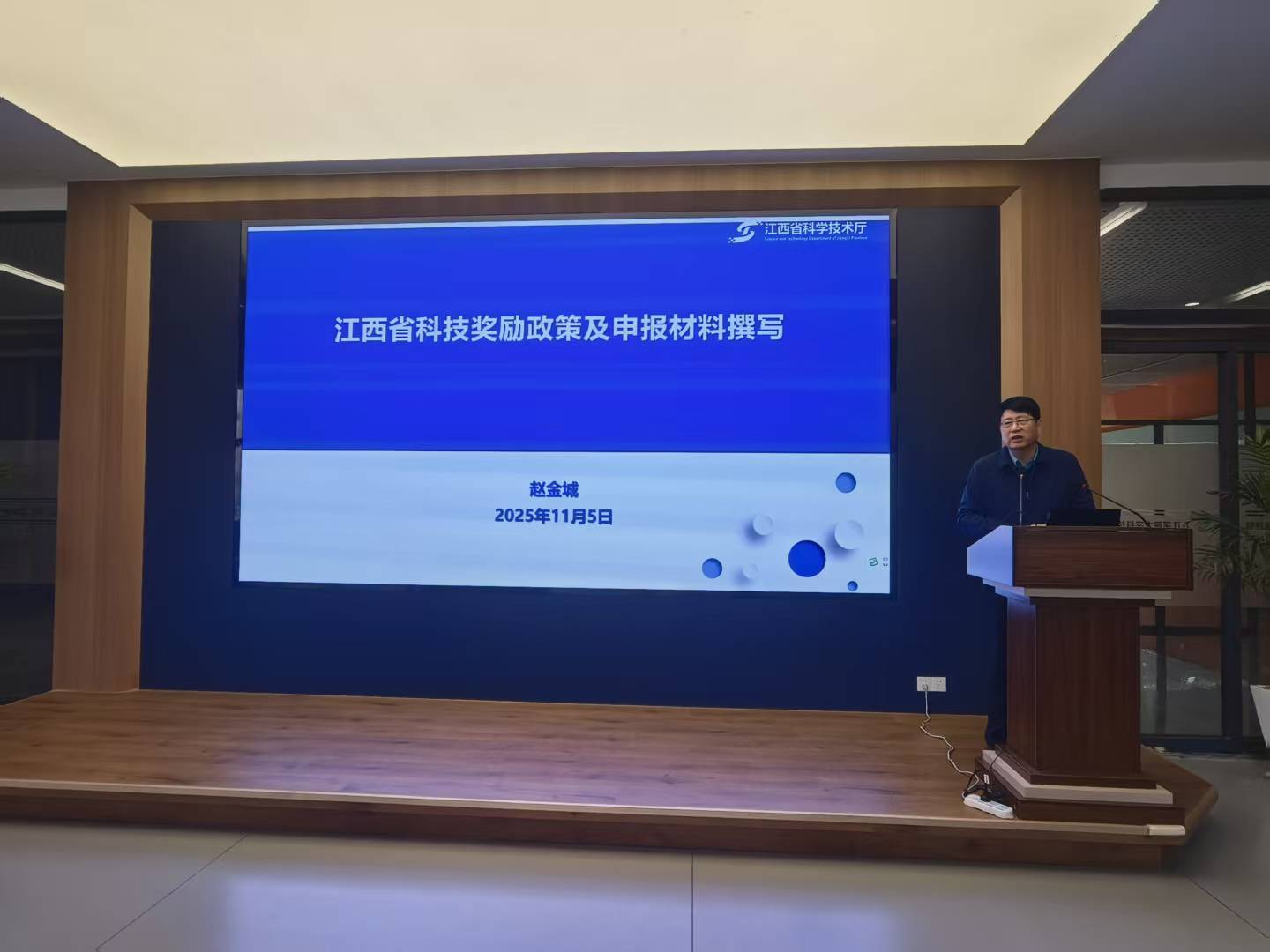 11月5日,贝博官网在大学科技园一楼报告厅成功举办九江市2025年江西省科学技术奖申报培训会。会议特邀江西省科技厅原一级巡视员赵金城、江西科技师范大学卢宝阳教授、江西水利电力大学王晖教授作专题讲座。来自BB贝博艾弗森官方网站等全市各单位近40位科学技术奖申报人,以及九江市科学技术局、贝博官网科研处等相关人员参加了会议。