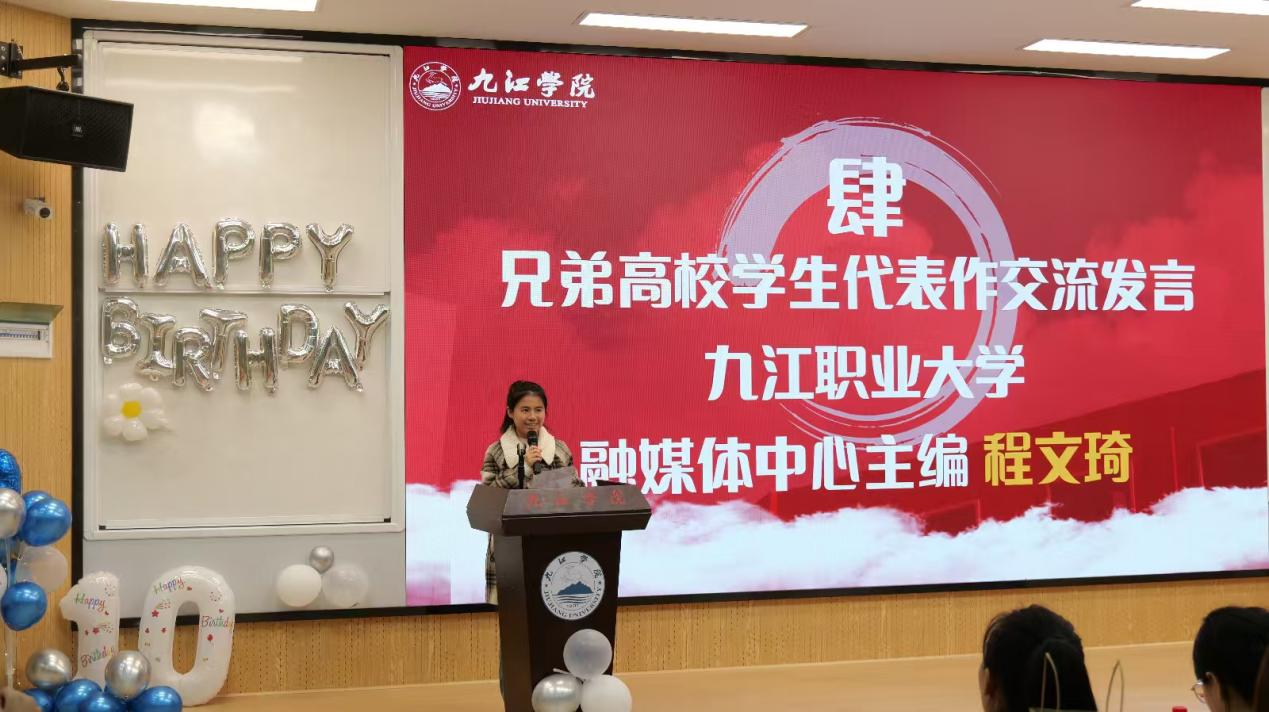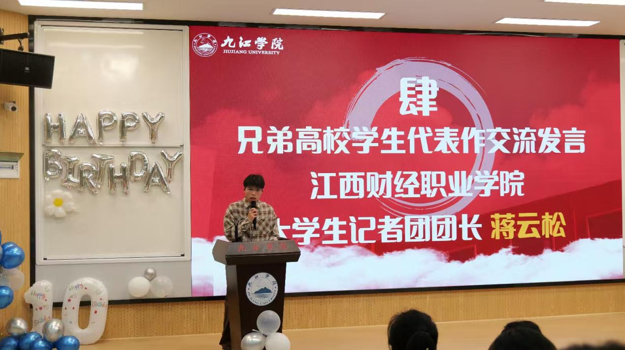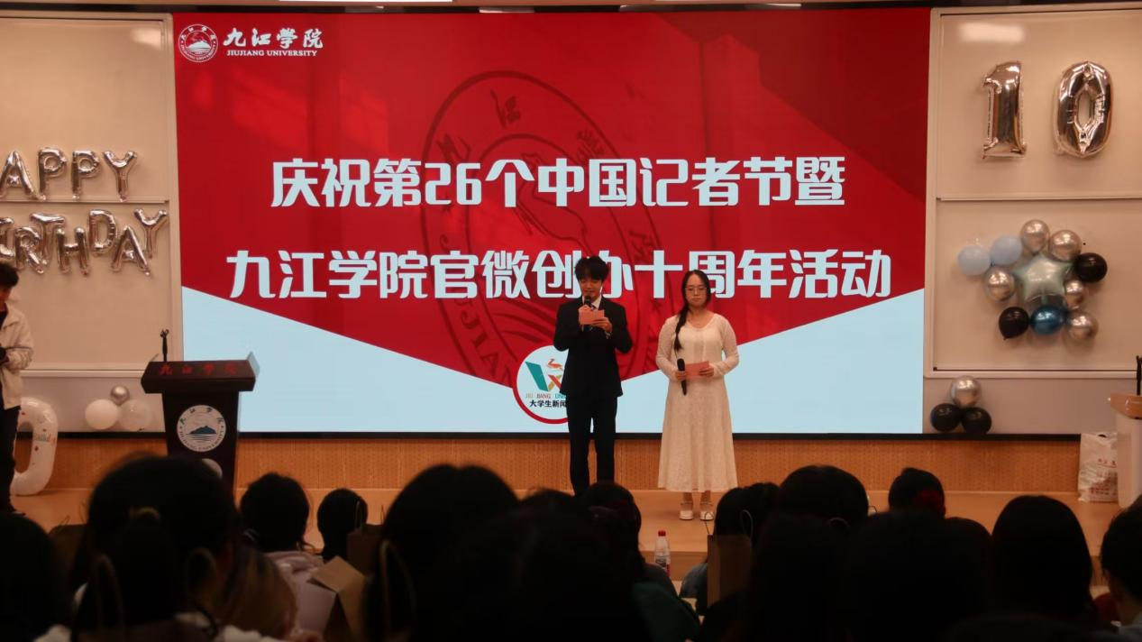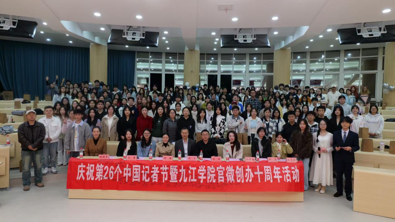 11月8日晚,学校在竞知楼阶梯教室2举行第26个中国记者节庆祝活动暨BB贝博艾弗森官方网站官方微信创办十周年纪念活动。校党委委员、宣传部部长刘平出席活动并为记者节采风大赛获奖学生颁奖。大学生新闻中心指导老师、新闻中心全体成员、校团委新媒体发展中心、各二级学院新媒体宣传骨干,以及江西职业技术大学、九江职业大学、江西财经职业学院等兄弟院校师生代表,共计200余人齐聚一堂,共襄盛会。