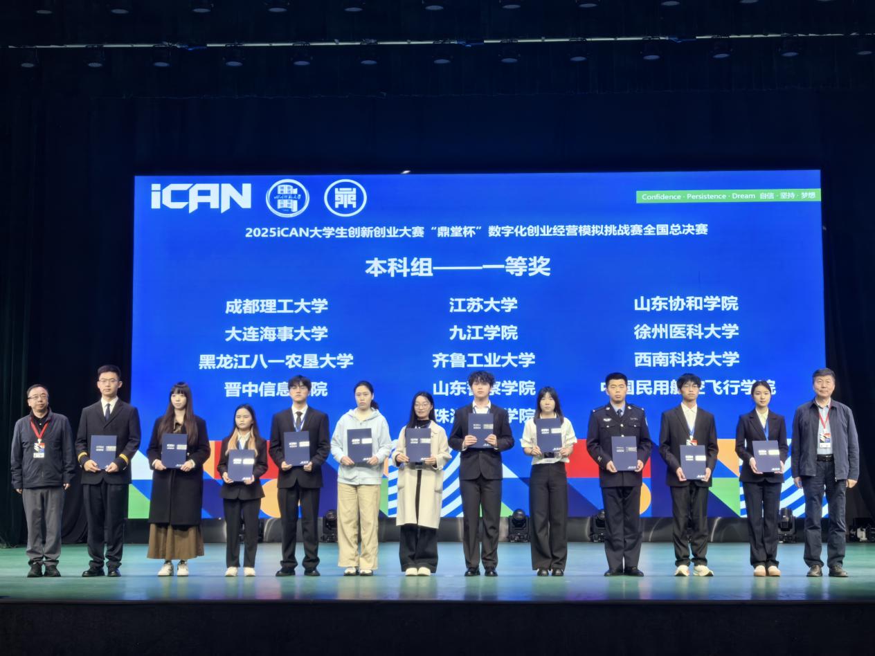 作为教育部认定的国家级A类竞赛,2025iCAN 大赛以 “自信、坚持、梦想”为核心理念,聚焦人工智能、新能源、高端装备制造等前沿领域,竞争异常激烈。贝博官网经济学院参赛团队紧扣国家战略需求与产业发展方向,深耕人工智能赛道,经过多轮数字化创业模拟实操环节与路演答辩环节,最终站上全国最高领奖台。