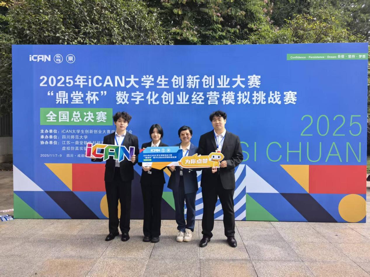 2025年11月8日,2025年iCAN 大学生创新创业大赛“鼎堂杯”数字化创业经营模拟挑战赛全国总决赛在四川师范大学圆满落幕。贝博官网经济学院顾艳辉教师指导的参赛团队(队长:王硕辉;成员:邓焱文、刘欣蕾)凭借硬核技术实力与扎实落地成果,从全国379余所高校、2万余名参赛者中脱颖而出,斩获全国一等奖,彰显了贝博官网创新创业教育的丰硕成果与青年学子的创新活力。
