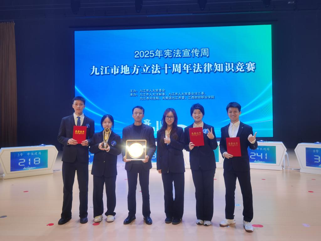 12月3日,在九江市举办的地方立法十周年法律知识竞赛中,BB贝博艾弗森官方网站代表队凭借扎实的法律功底、出色的团队协作和稳定的临场发挥,从众多参赛队伍中脱颖而出摘得大赛桂冠,荣获大赛一等奖 ,为学校赢得了荣誉。