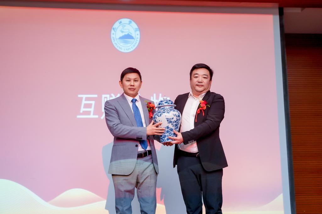成立仪式上,学校、九江校友会分别与法律分会互赠纪念礼品。
