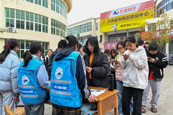为保障活动公平、有序、安全开展,学生工作处(学生资助管理中心)工作人员与自强社志愿者组成专业执行团队,提前规划答题动线,明确实名参与、严禁作弊的活动规则,并在活动期间全程值守,为参与学生提供抽题引导、疑问解答等细致服务。活动每日设置中午12:00-14:00及16:30-18:30两个高峰时段,站点前时常排起长队,学生参与热情高涨。在志愿者的协助下,学生随机抽题作答,只要得分达到80分及以上,即可领取定制“暖心书包”并完成实名登记。