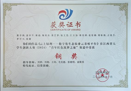 项目同时注重人才培养,通过导师制与项目制相结合的模式,吸引多名本科生参与研发与实践。学生团队屡获奖项,其中22级团队负责人获省级竞赛铜奖,并立志投身乡村建设。累计立项国家级创新创业训练计划项目8项,形成科研反哺教学的良好循环。
