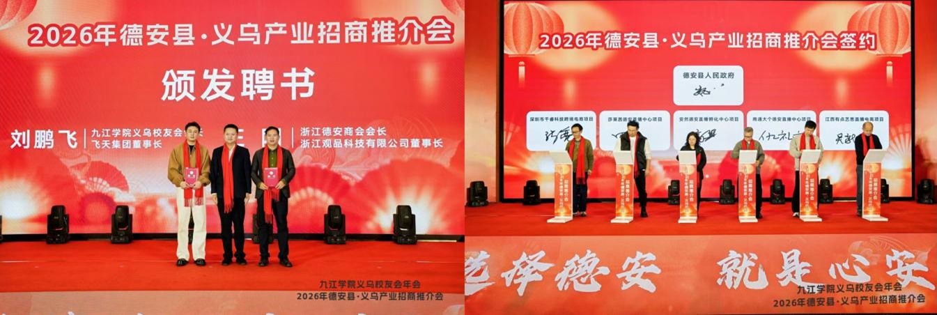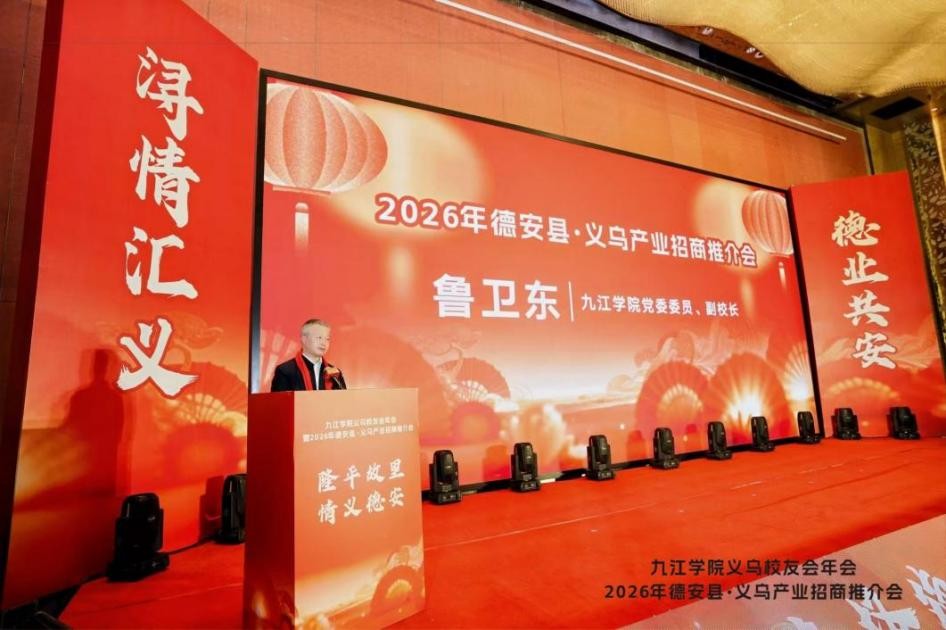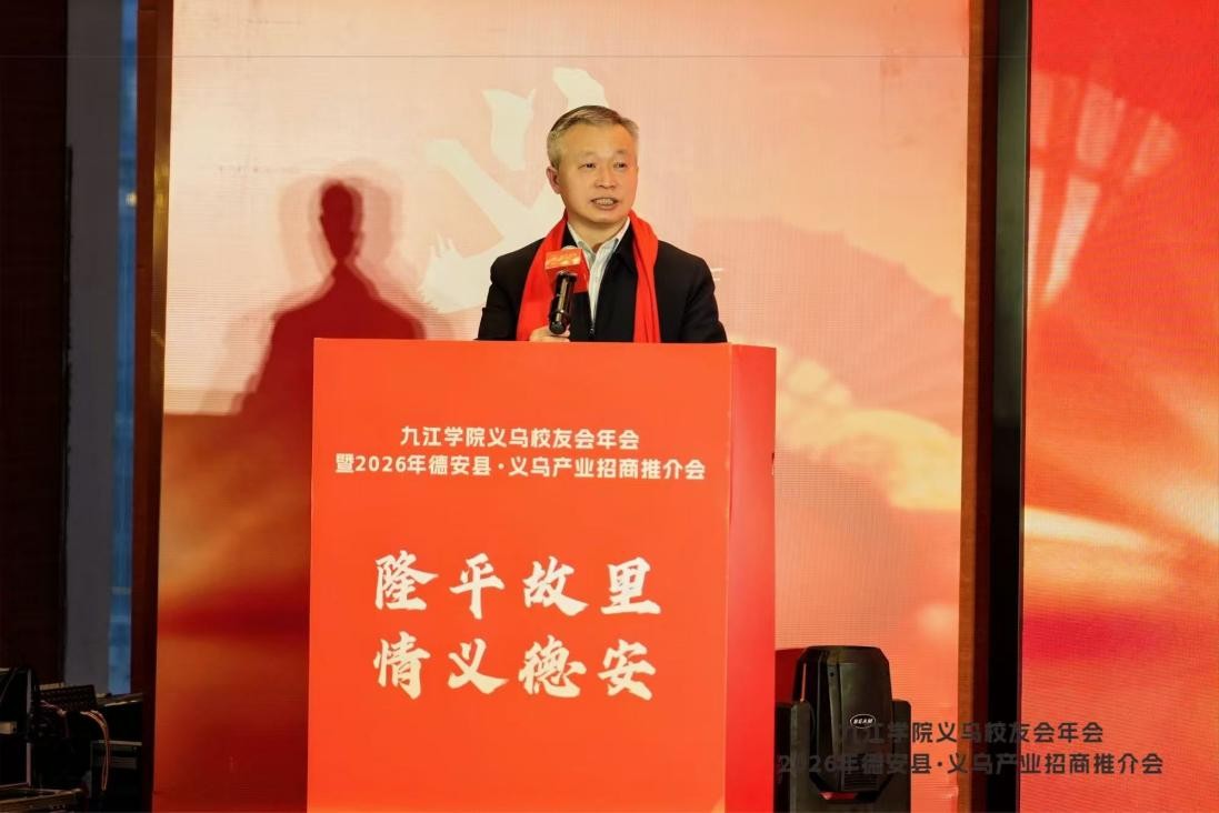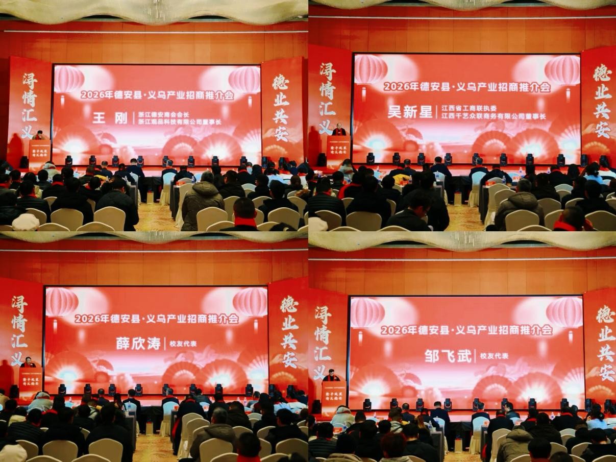 1月30日,校党委委员、副校长鲁卫东率队赴浙江省义乌市,出席义乌校友会2026年年会暨德安县·义乌产业招商推介会,并走访校友企业,开展访企拓岗活动。财务处相关负责同志、校友联络与服务中心负责人陪同参加。