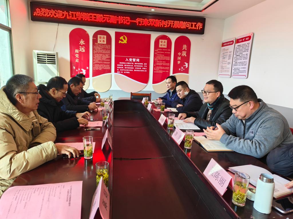 在随后召开的座谈会上,王殿元一行与双新村新当选的村“两委”班子成员以及学校驻双新村、东山村工作队员进行交流。新任村党支部书记介绍了新一届村“两委”成员情况及下一步工作计划;驻村工作队员围绕基层党建、产业发展和个人工作体会逐一发言。