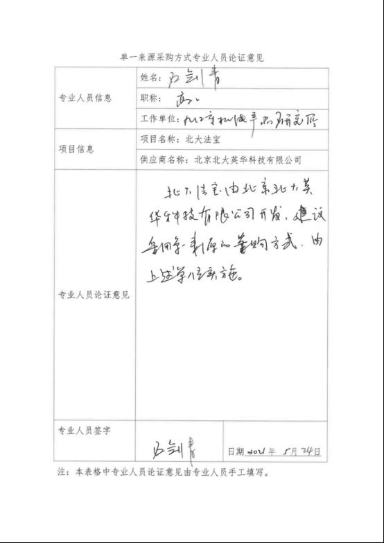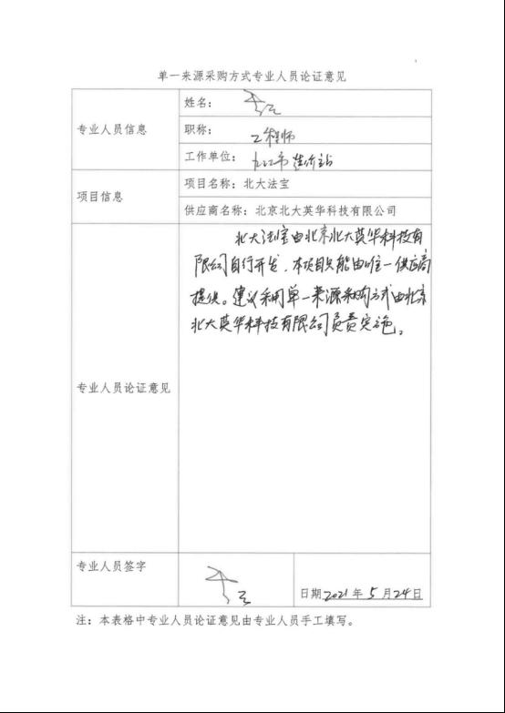 “北大法宝”由北京北大英华科技有限公司自主研发,建议采用单一来源采购方式,由北京北大英华科技有限公司具体实施。